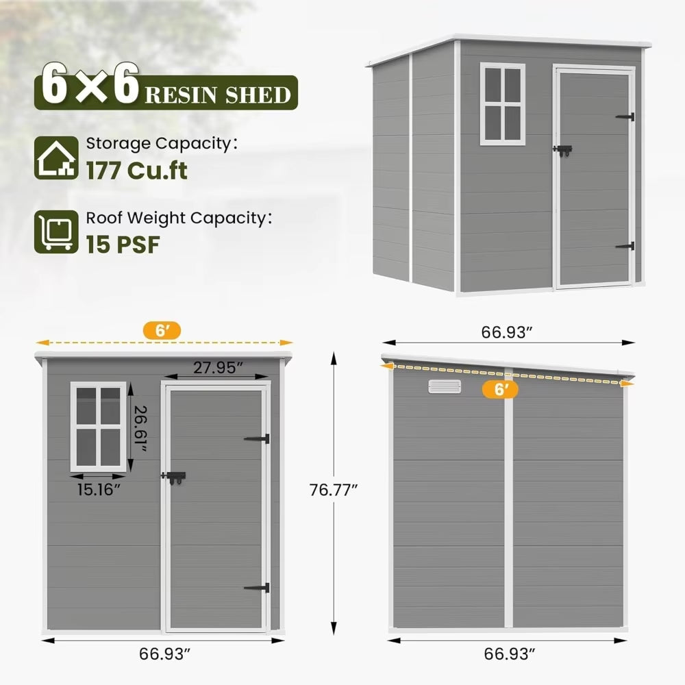 Spacious 6×6 FT Resin Outdoor Storage Shed with Floor & Lockable Door – Easy Assembly