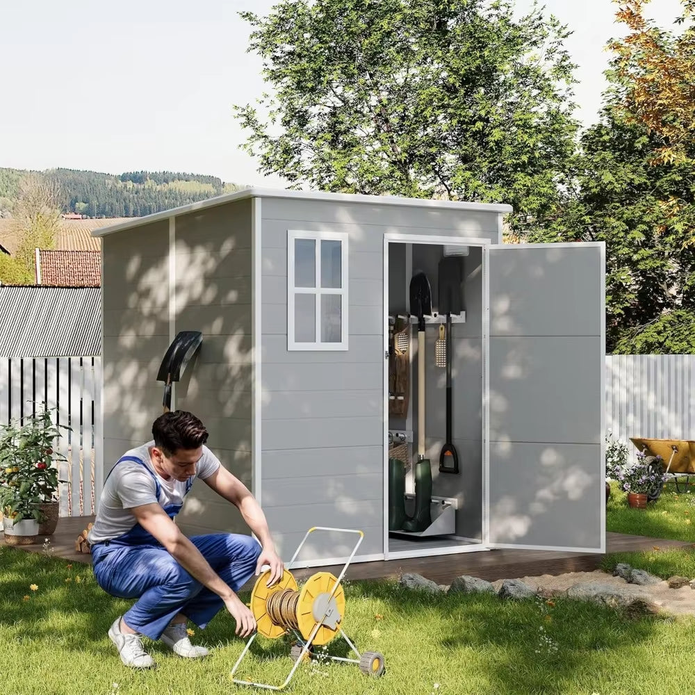 - Versatile Outdoor Use: This multifunctional resin shed is perfect for storing lawn mowers, bicycles, yard tools, garden equipment, and can also serve as a pet shelter or garbage collection room in backyards, gardens, and terraces.